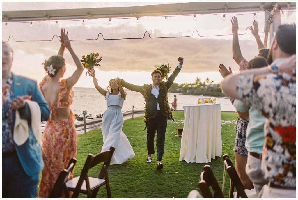 As the night unfolded, the newlyweds shared emotional first dances and laughter-filled moments with family and friends. The elegant two-tier cake decorated with cascading orange orchids was a highlight before the dance floor came alive with music from DJ Ben of Kustom Sounds Kauai.