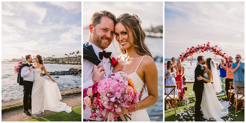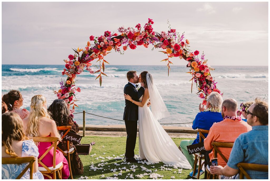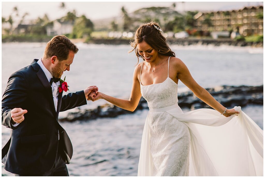 Inga and Connor’s oceanfront Beach House Kauai wedding was not just a celebration of their love but a testament to the beauty of Kauai’s landscapes and the timeless artistry of Bradyhouse Studios, capturing every moment with grace and passion.