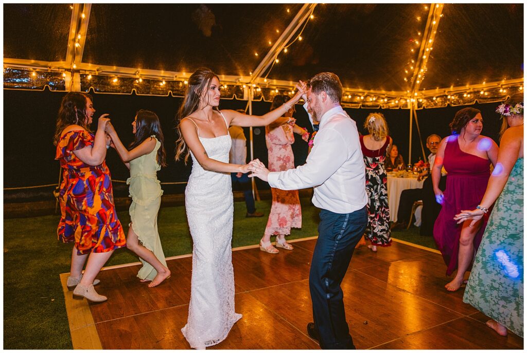 The evening unfolded with heartfelt moments as Inga and Connor were welcomed into their reception as Mr. and Mrs. for the second time, their first dance a mesmerizing blend of love and joy under a clear top tent with the rhythmic melody of crashing waves in the background. Surrounded by their closest friends and family, they savored farm-to-table delights, signature cocktails, and danced under the starlit sky, creating memories to last a lifetime.